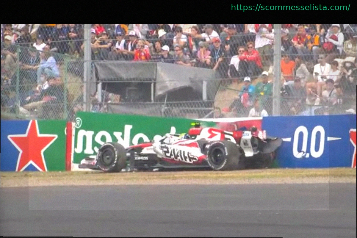 Il pilota della Haas ha però calcolato male la manovra: è finito sull’erba, ha travolto i pannelli indicatori di frenata in polistirolo, prima di carambolare di nuovo attraverso la pista e la ghiaia, e infine schiantarsi lateralmente contro una barriera. È stato un impatto violento per Bearman, che è riuscito a uscire dalla sua vettura ma ha avuto bisogno dell’aiuto dei commissari a causa di un evidente infortunio alla caviglia destra; è stato infatti visto zoppicare pesantemente e incapace di appoggiare il piede a terra.