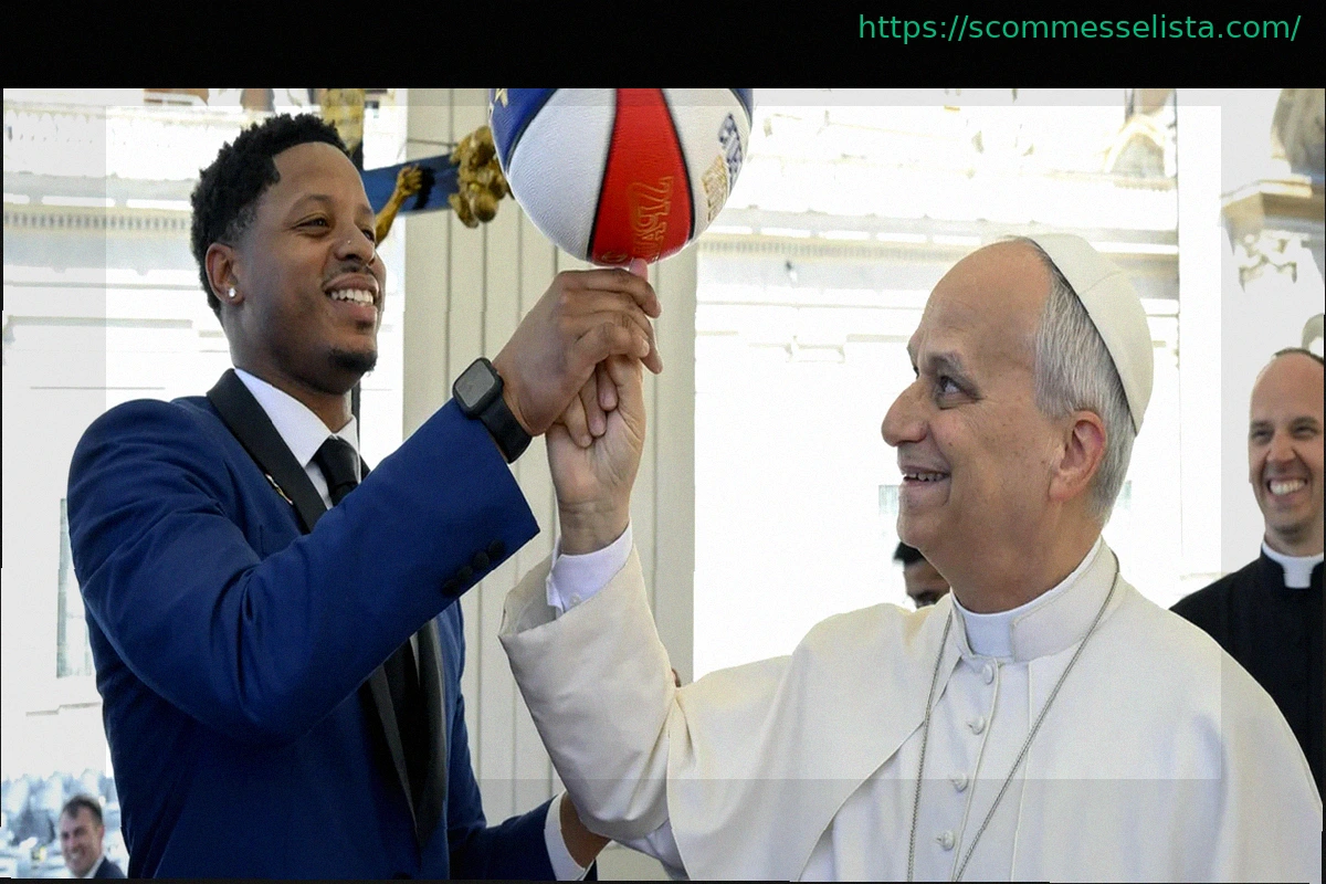 Gesto inaspettato di carisma e apertura da parte di Papa Leone, che si è cimentato nella dimostrazione di un’incredibile abilità: far roteare un pallone da basket sulla punta del dito. Questo momento di grande impatto visivo è stato reso possibile dalla collaborazione tra Sua Santità e la celebre squadra di virtuosi del basket, gli Harlem Globetrotters.
